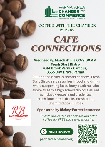 Coffee with the Chamber is now CAFE CONNECTIONS! Join us to network over coffee and goodies prepared by culinary students at Fresh Start Bistro
