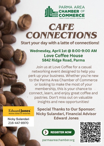Join the Parma Area Chamber of Commerce for a relaxed, in-person networking event at Love Coffee House — a local favorite in Parma known for its incredible coffee, handcrafted lattes, and mouthwatering pastries.