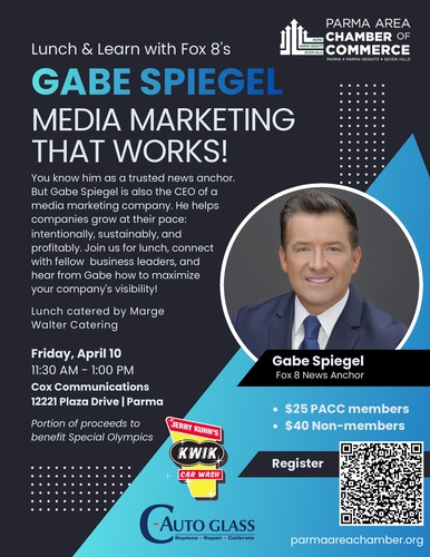 You know him as a trusted news anchor. But Gabe Spiegel is also the CEO of a media marketing company. He helps companies grow at their pace: intentionally, sustainably, and profitably. Join us for lunch, connect with fellow business leaders, and hear from Gabe how to maximize your company's visibility!