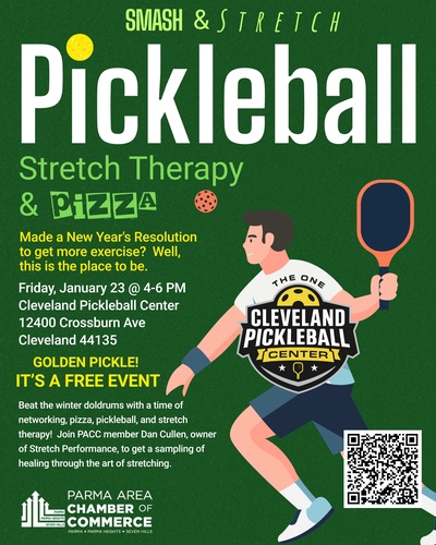 Made a New Year's Resolution to get more exercise? Well, this is the place to be. A tad achy from the workweek and winter weather? We've gotcha covered! Beat the winter doldrums with a time of networking, pizza, pickleball, and stretch therapy!